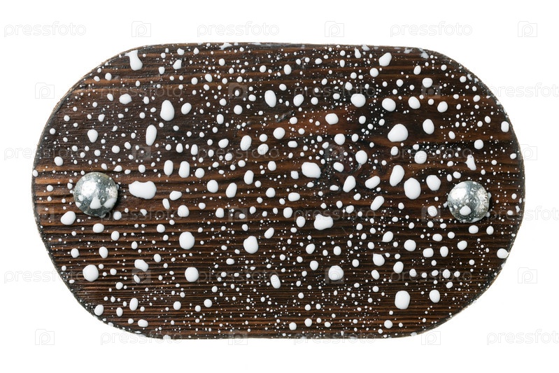 Старая деревянная доска с каплями белой краски. Изолированные на белом фоне