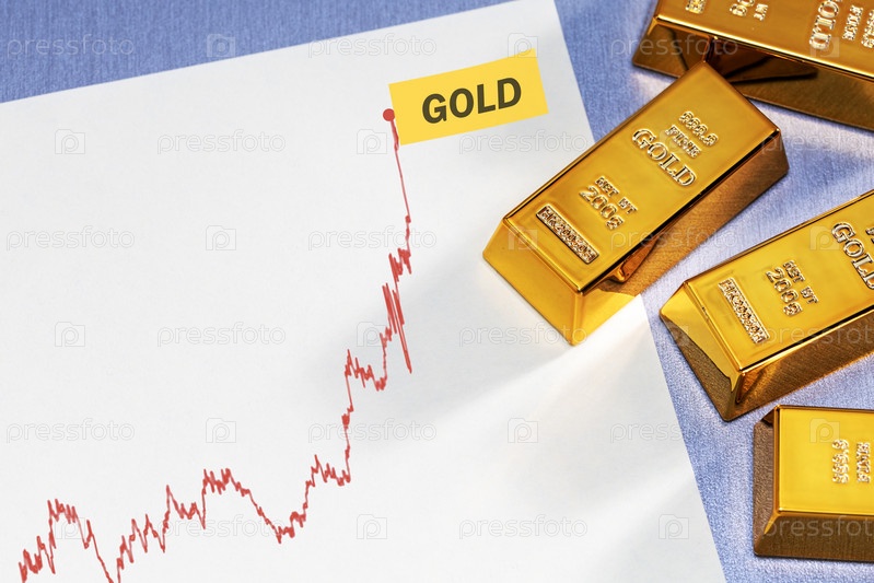 Рост цен на золото. золотые слитки и растущий график