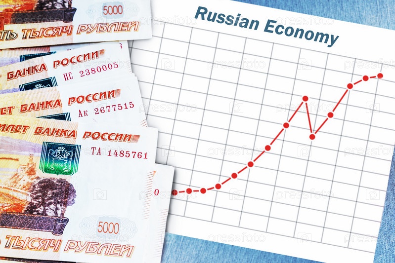 Банкноты российского рубля и растущая диаграмма российской экономики