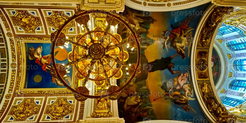 Исаакиевский собор .позолоченные массивные люстры-паникадилы,роспись