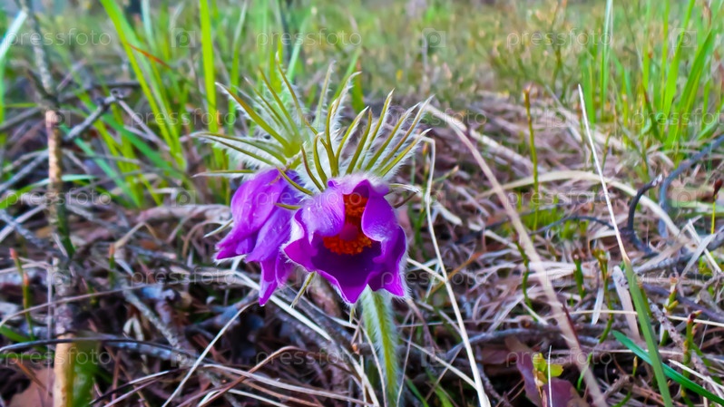 Весенний пейзаж крупным планом.Прострел раскрытый Растение