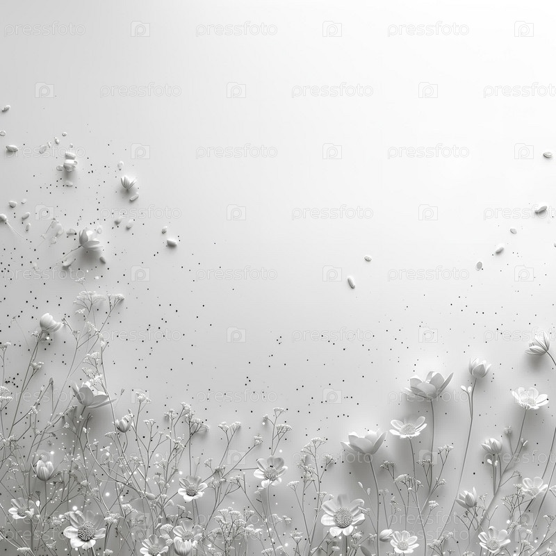 Летний декор из полевых цветов и серебряных искр на светлом фоне