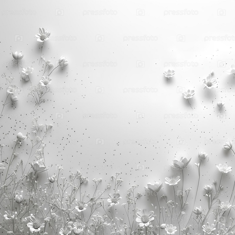 Летний декор из полевых цветов и серебряных искр на светлом фоне