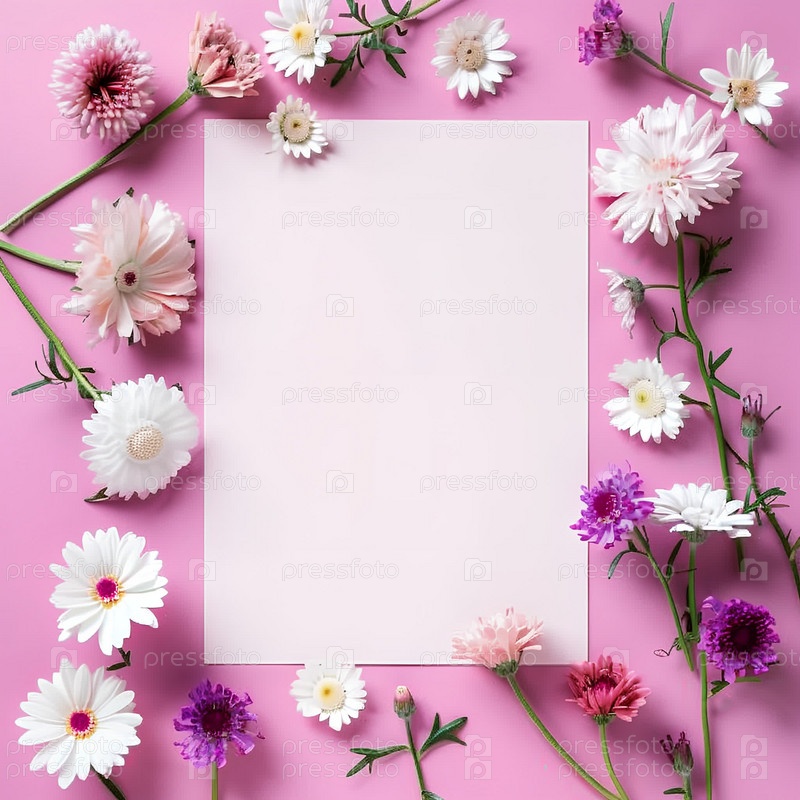 Цветки фиолетово-розовые. Весенние цветы. Синий фон. Красивый баннер для открытки. Место для текста