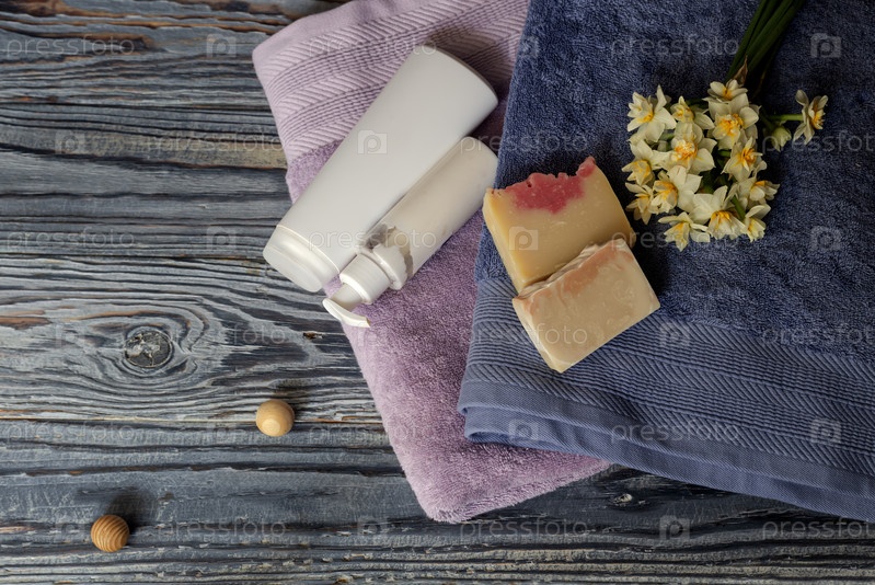 Предметы личной гигиены для спа, полотенца на столе крупным планом