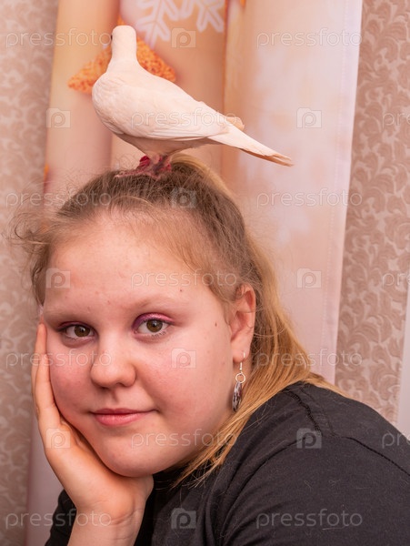 Россия, Московская область, 25.04.2024. черепаха сидит у девочки на голове. ребенок с голубем. Россия, Московская область, 04/25/2024. черепаха сидит на голове девушки. ребёнок с голубей