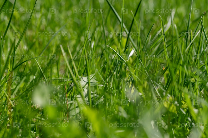 Свежая утренняя весенняя трава ранним утром. Концепция солнечного дня. Естественный фон