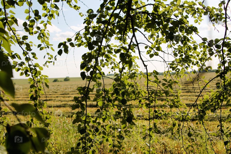 Летний березовый лес в середине лета. Фон из стволов белых берез