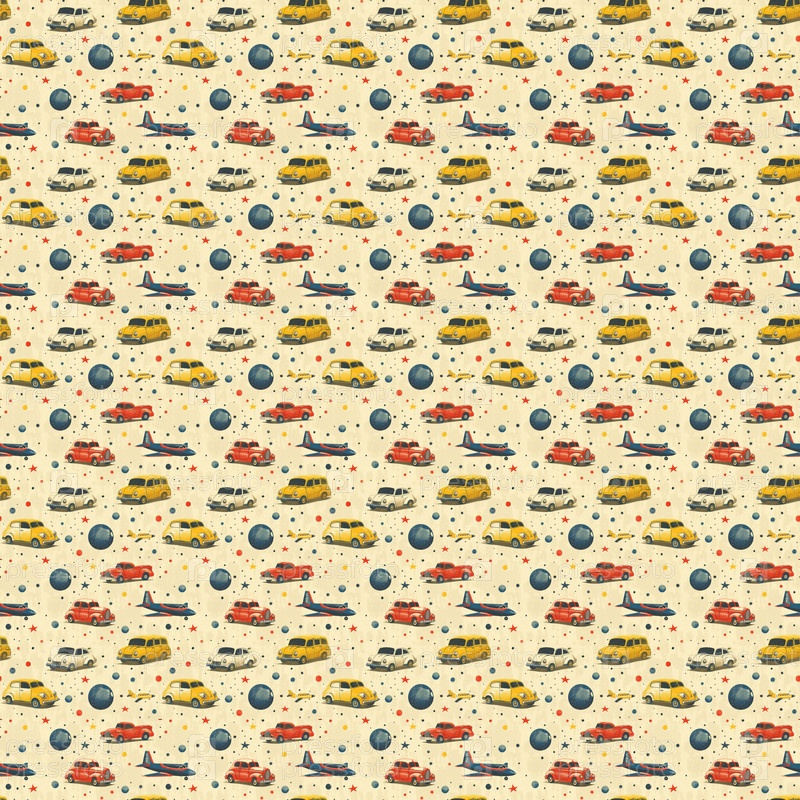 Широкий детский узор с шариками, игрушечными самолетиками и машинками