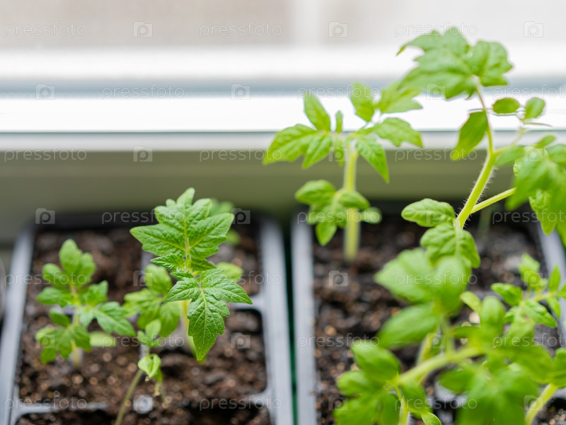 Рассада томатов в пластиковых контейнерах
