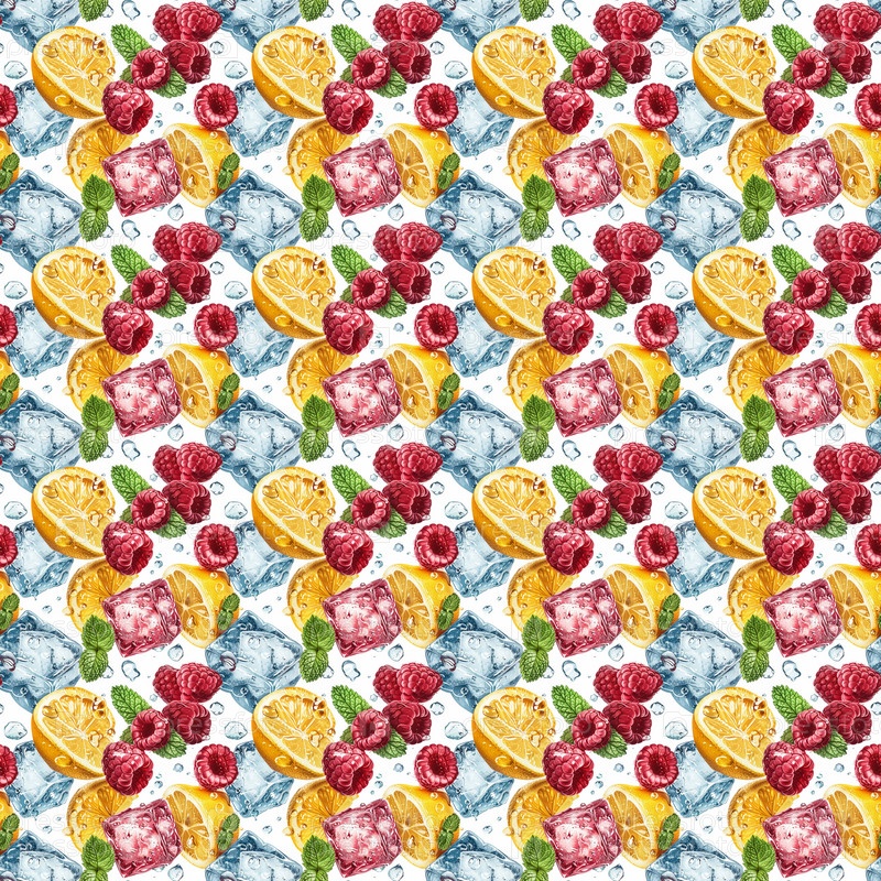 Летний узор: кубики льда, малина, ломтики лимона и листья мяты