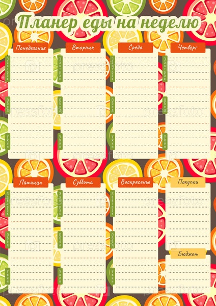 Планер еды на неделю на листе А4