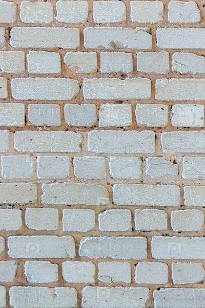 Старая треснутая белая кирпичная стена в инее