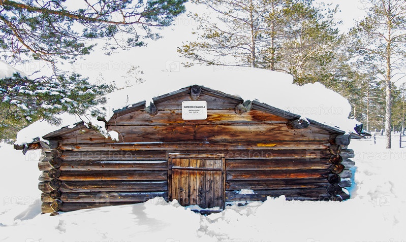 Старый деревянный дом в лесу зимой. Россия. Сибирь. Ноябрьск