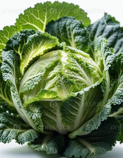 Детальный крупный план свежей савойской капусты показывает сложные узоры ее листьев и текстуру с пряжами. Савойская капуста Brassica oleracea L convar capitata var sabauda овощная культура. Сгенерированный ИИ
