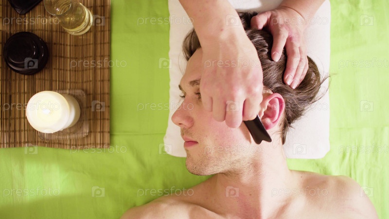 Руки терапевта делают традиционный китайский массаж камнями