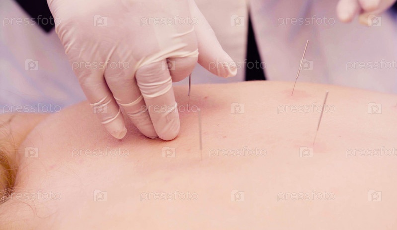 Китайский терапевт вводит иглы пациенту