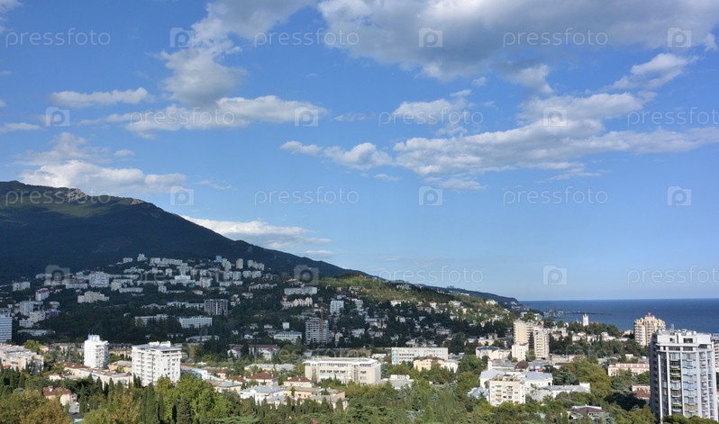 Вид на город Ялту из кабинки канатной дороги