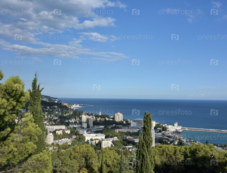 Вид на город Ялту из кабинки канатной дороги