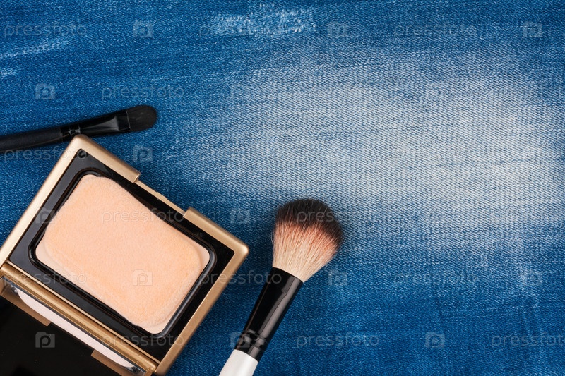 Натюрморт из косметики на рваных джинсах