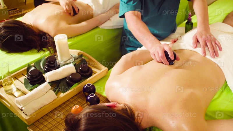 Два китайских терапевта делают вакуумный массаж спины