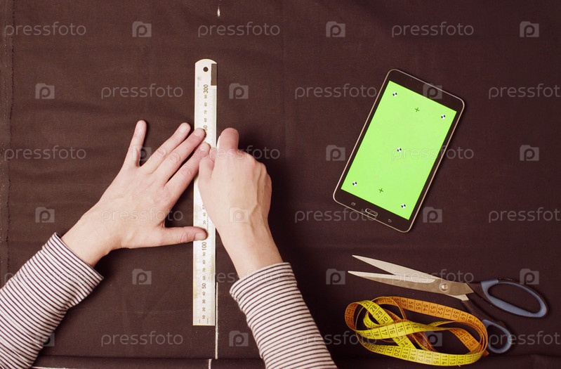 Женские руки рисуют мелом на ткани