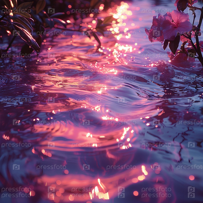 Розовая вода в пруду с гибискусом крупным планом, эстетическое настроение, блеск
