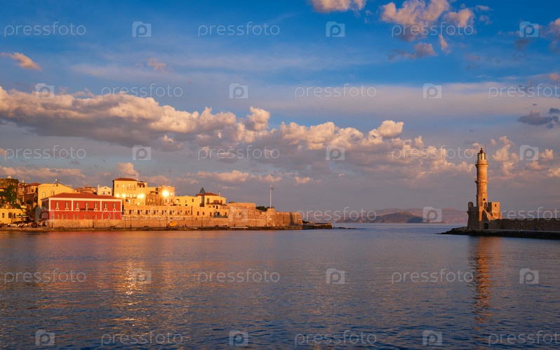 Живописный старый порт Ханья, остров Крит. Греция