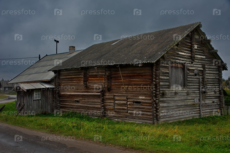 Россия, Карелия. Архитектура старинных бревенчатых крестьянских домов на берегу Онежского озера