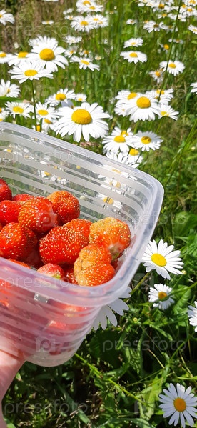 Летняя клубника на травяном поле