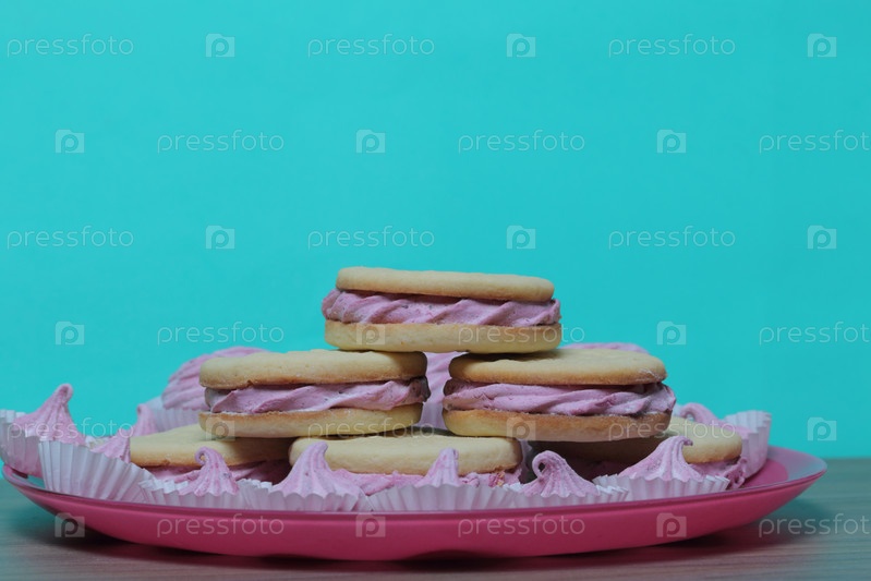 Готовые сэндвичи с зефиром. Они лежат на тарелке. Далее на тарелке лежит зефир разного размера