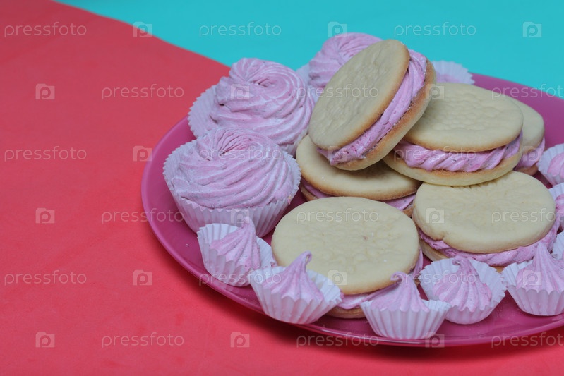 Готовые сэндвичи с зефиром. Они лежат на тарелке. Далее на тарелке лежит зефир разного размера