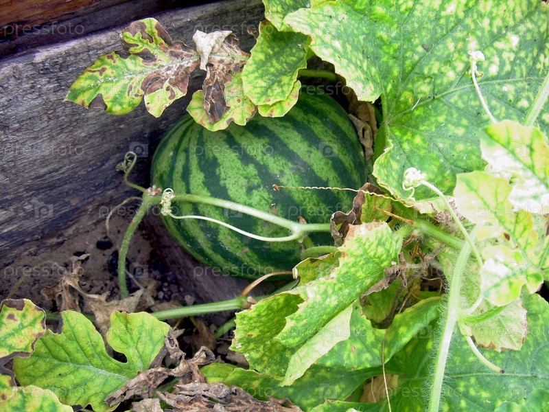 Огород, грядки, зреет арбуз