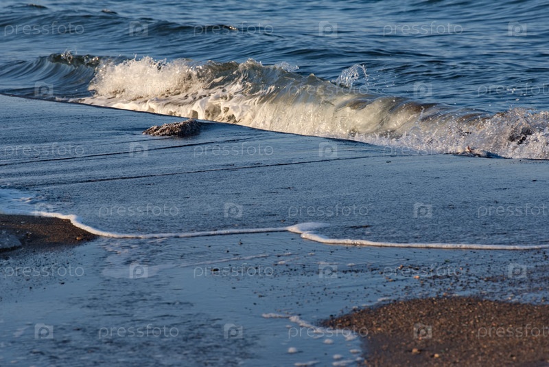 Россия. Дальний Восток. Курильские острова. Остатки разрушенных волн на вулканическом песке на берегу Охотского моря острова Итуруп