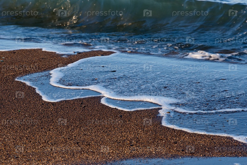 Россия. Дальний Восток. Курильские острова. Остатки разрушенных волн на вулканическом песке на берегу Охотского моря острова Итуруп