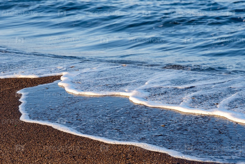 Россия. Дальний Восток. Курильские острова. Остатки разрушенных волн на вулканическом песке на берегу Охотского моря острова Итуруп
