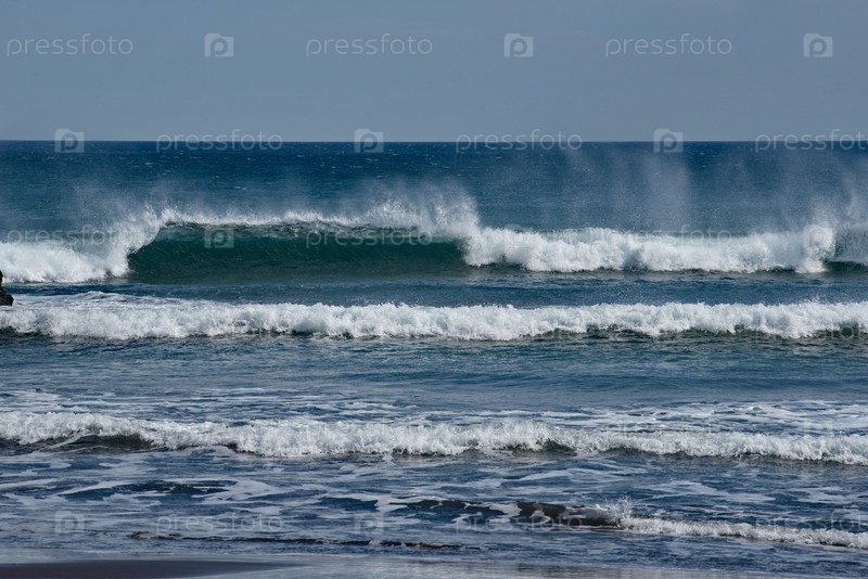 Россия. Дальний Восток. Курильские острова. Штормовые волны идущие навстречу порывистого ветра с берега острова Итуруп в Охотском море
