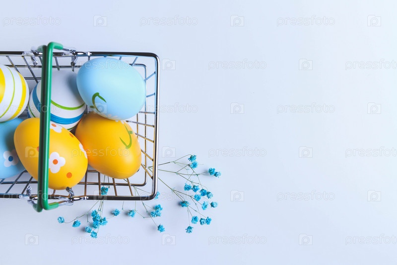 Пасхальные яйца в корзине. Поздравляю с христианским праздником Пасхи