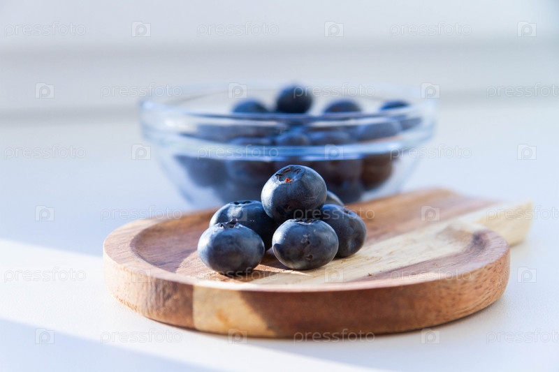 Черника на деревянном столе. Свежие ягоды. Дикая черника на деревянной подставке
