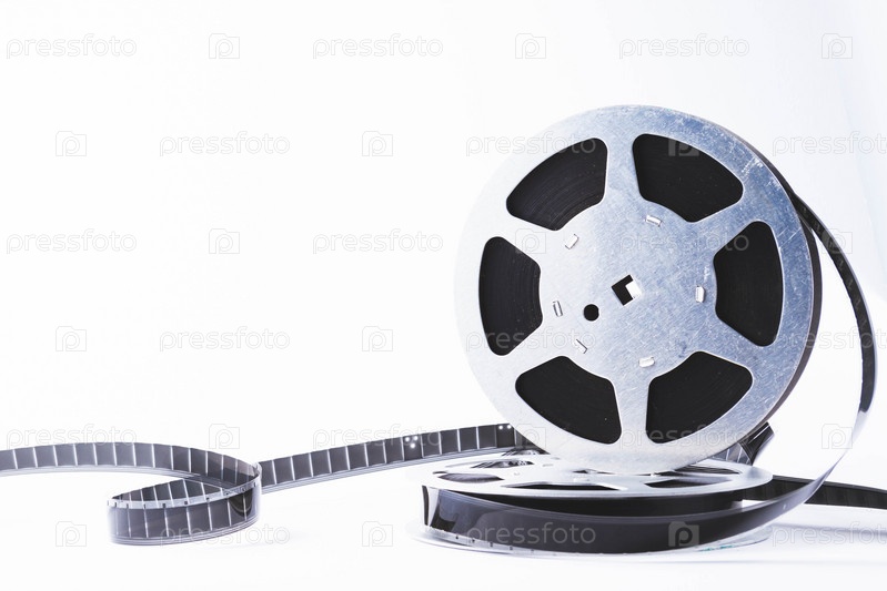 Винтажная кинопленка изолирована на белом фоне. Кинокадры на пленке