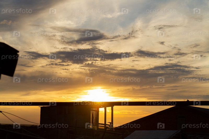 Красивый закат в поле. Пейзаж на закате. Цветы и трава на солнце