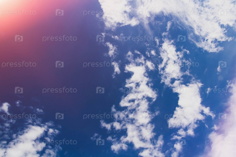 Белые облака в ярком солнечном свете. Возрождение дня. Облака в ярком солнечном свете
