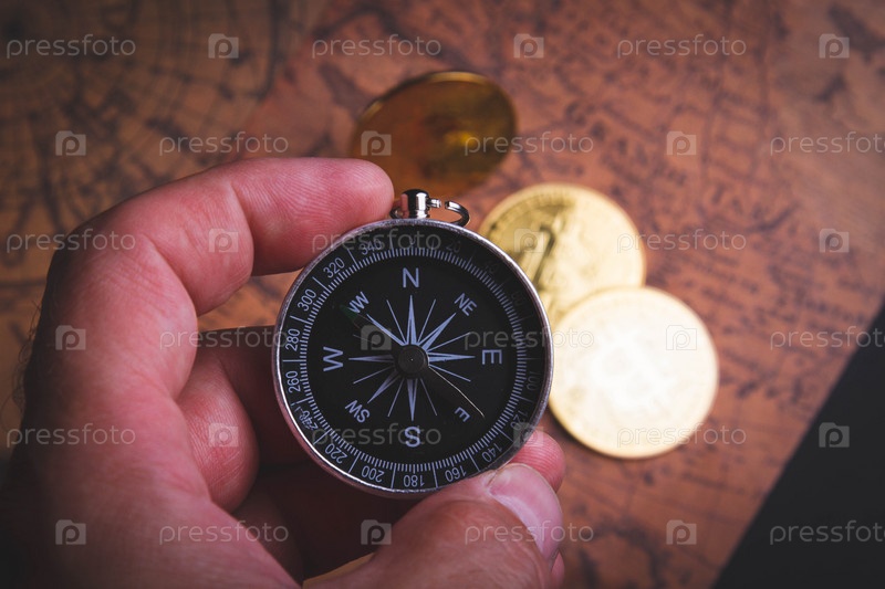 Компас и биткойн. Путешествия и криптовалюты. Покупка билетов за биткойны