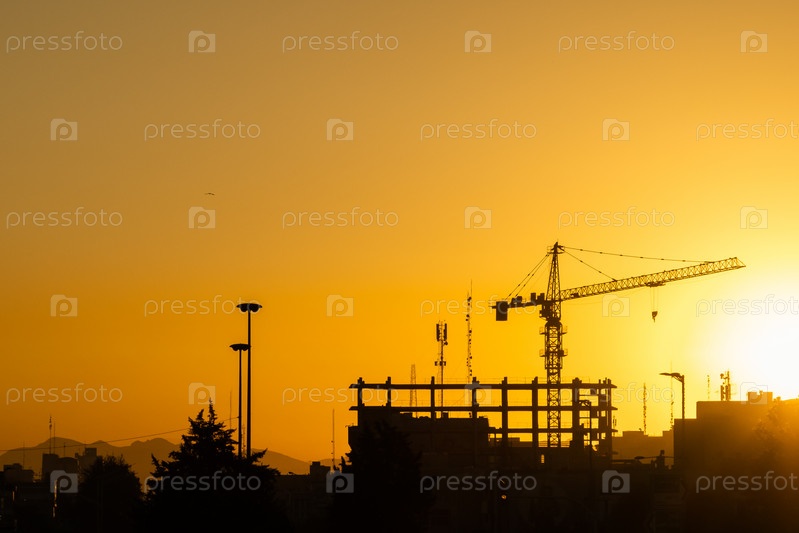 Промышленный фон с силуэтом строительного крана на закате