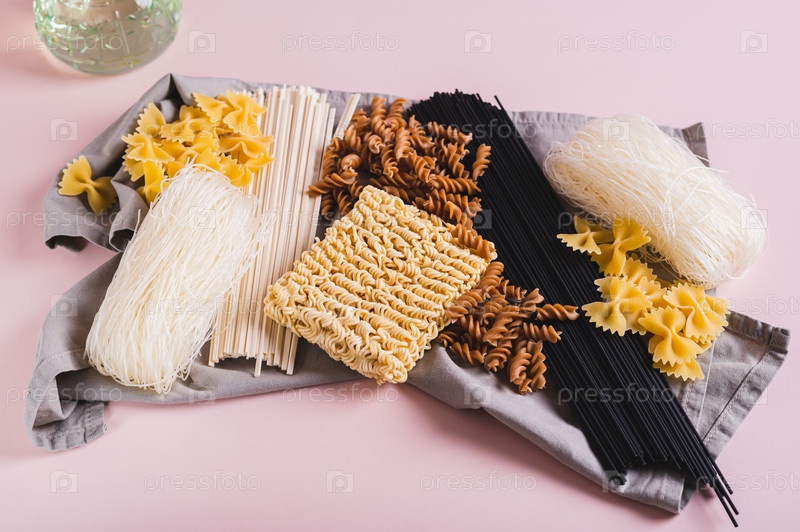 Фунчоза, удон, черная лапша, гречневая и пшеничная паста на салфетке