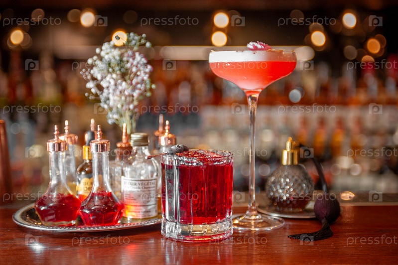 Два алкогольных коктейля на барной стойке