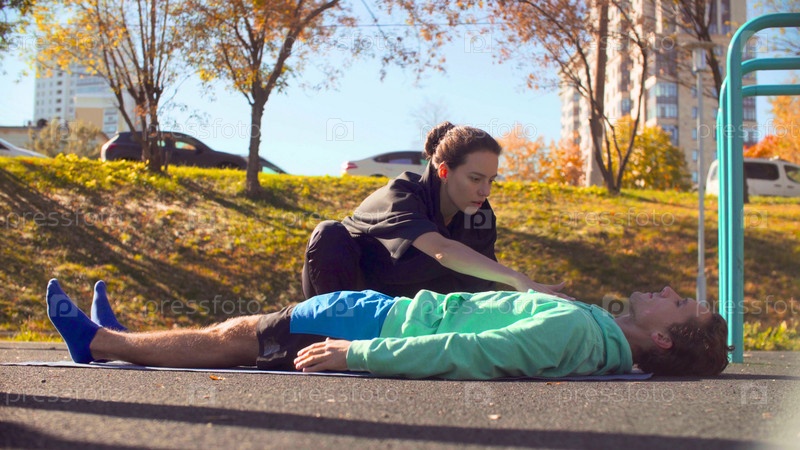 Молодой человек делает упражнения на спортивной площадке