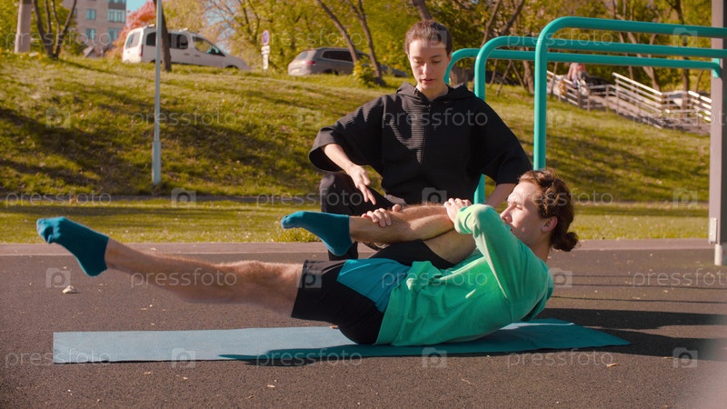 Молодой человек делает упражнения на спортивной площадке