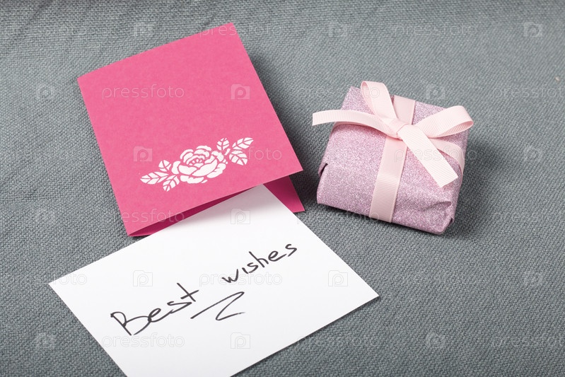 Открытки ручной работы. Рядом подарок в упаковочной бумаге, перевязанный ленточкой. Оригинальный подарок