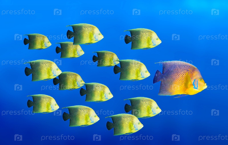 Понятие лидерства - крупная рыба ведущая стаю тропических рыб